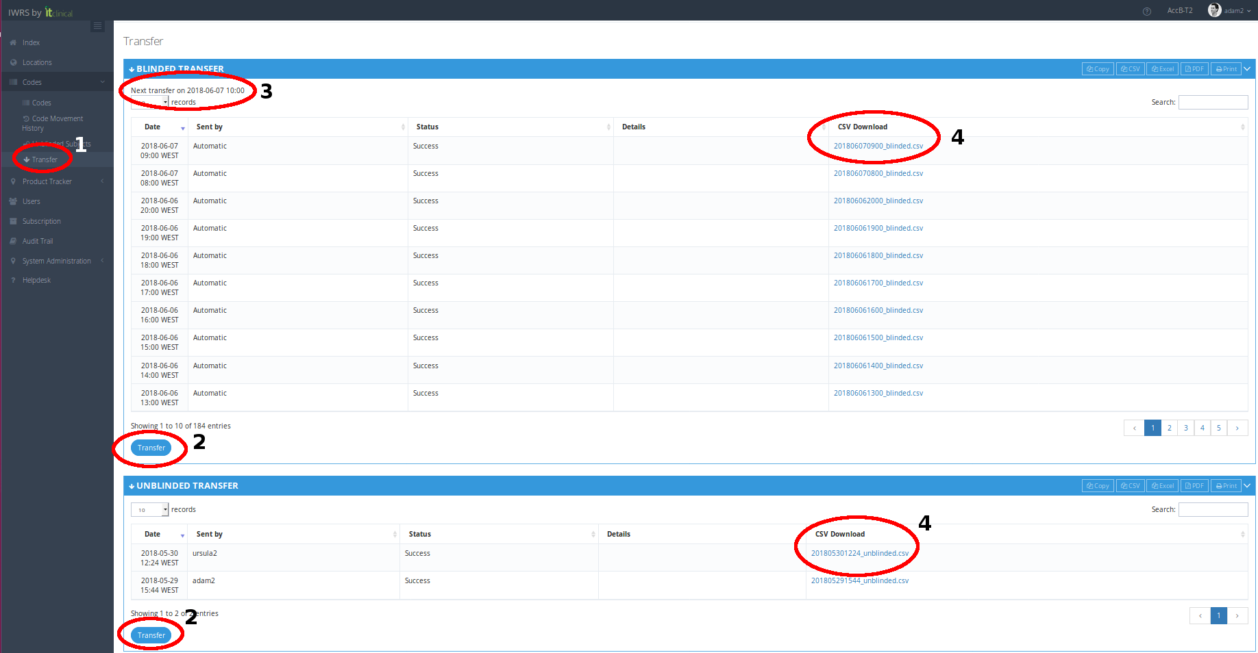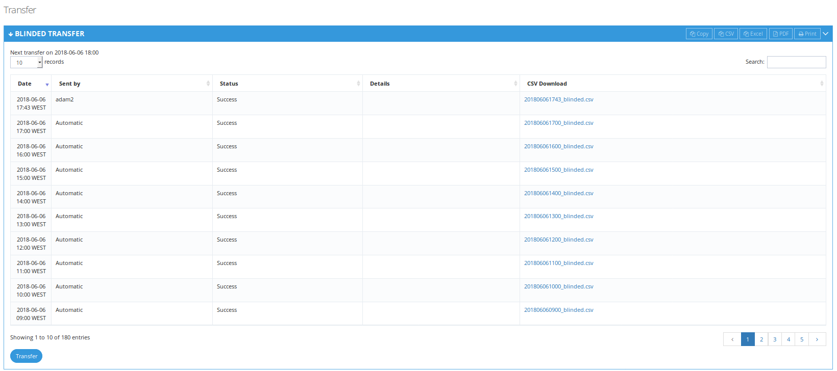 Blinded transfer is configured to automatically transfer the information (e.g. weekly, monthly) - the scheduled date for next automatic transfer is available in page (see [3] above)